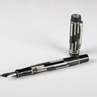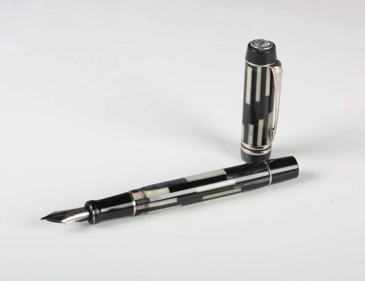 A modern Parker Duofold fountain pen with black and white striped casing, length 13.5cm.