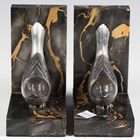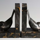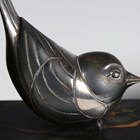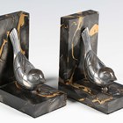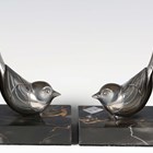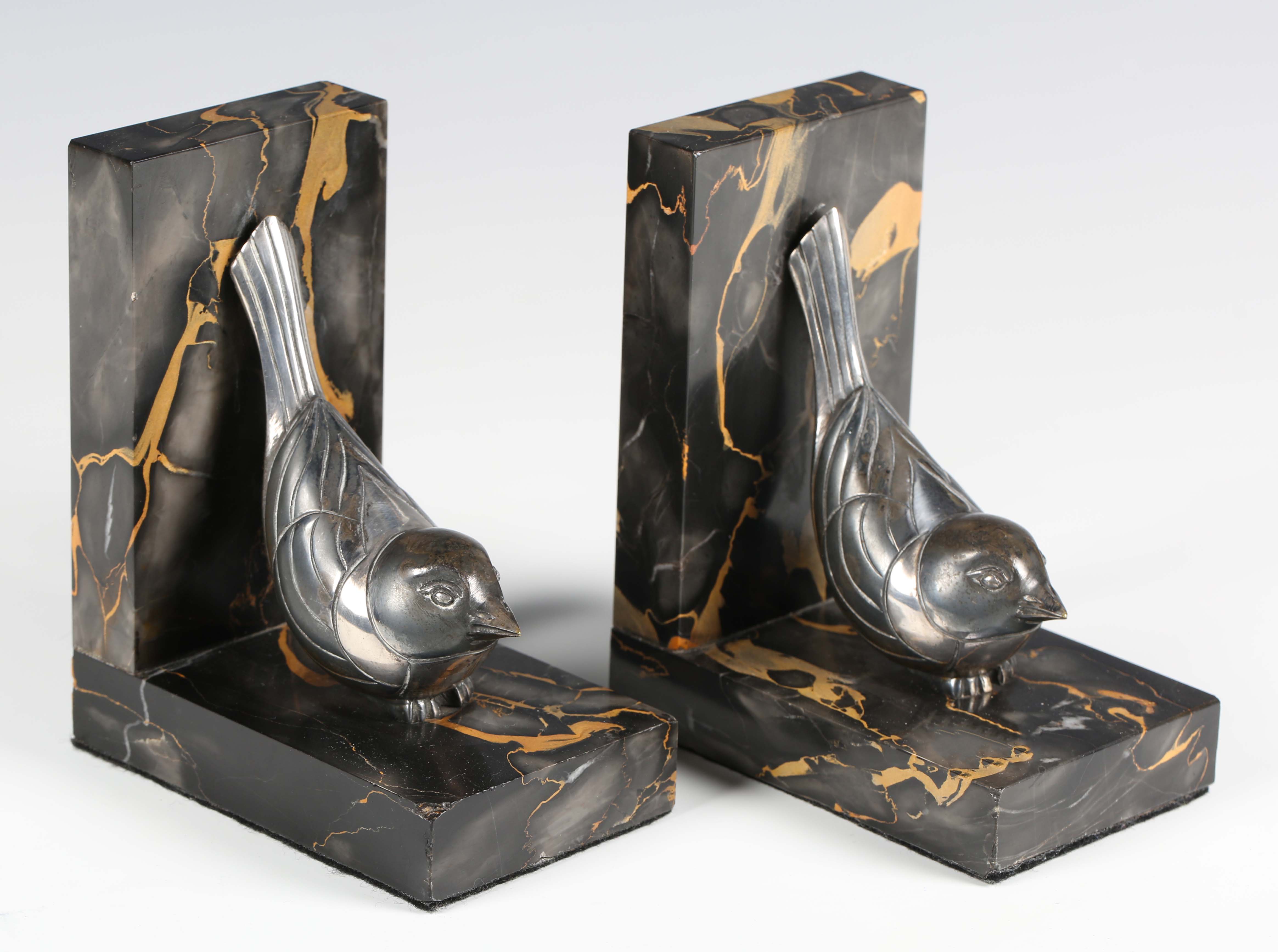 F.H. Danvin - a pair of Art Deco silvered cast bronze and marble bookends, each modelled as a stylized bird, bearing cast signature, height 13.5cm.