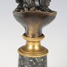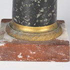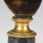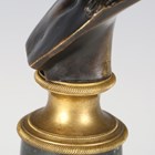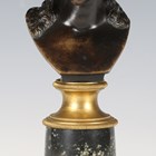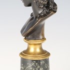 A late 19th/early 20th century French cast bronze head and shoulders bust of Ariadne, raised on a gilt metal mounted marble pedestal, height 22.5cm.