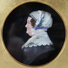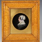 A Victorian coloured wax profile portrait of a lady, mounted within a birds' eye maple frame, 22.5cm x 20.5cm.