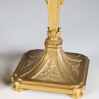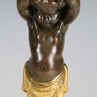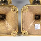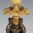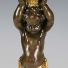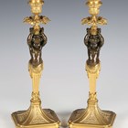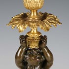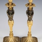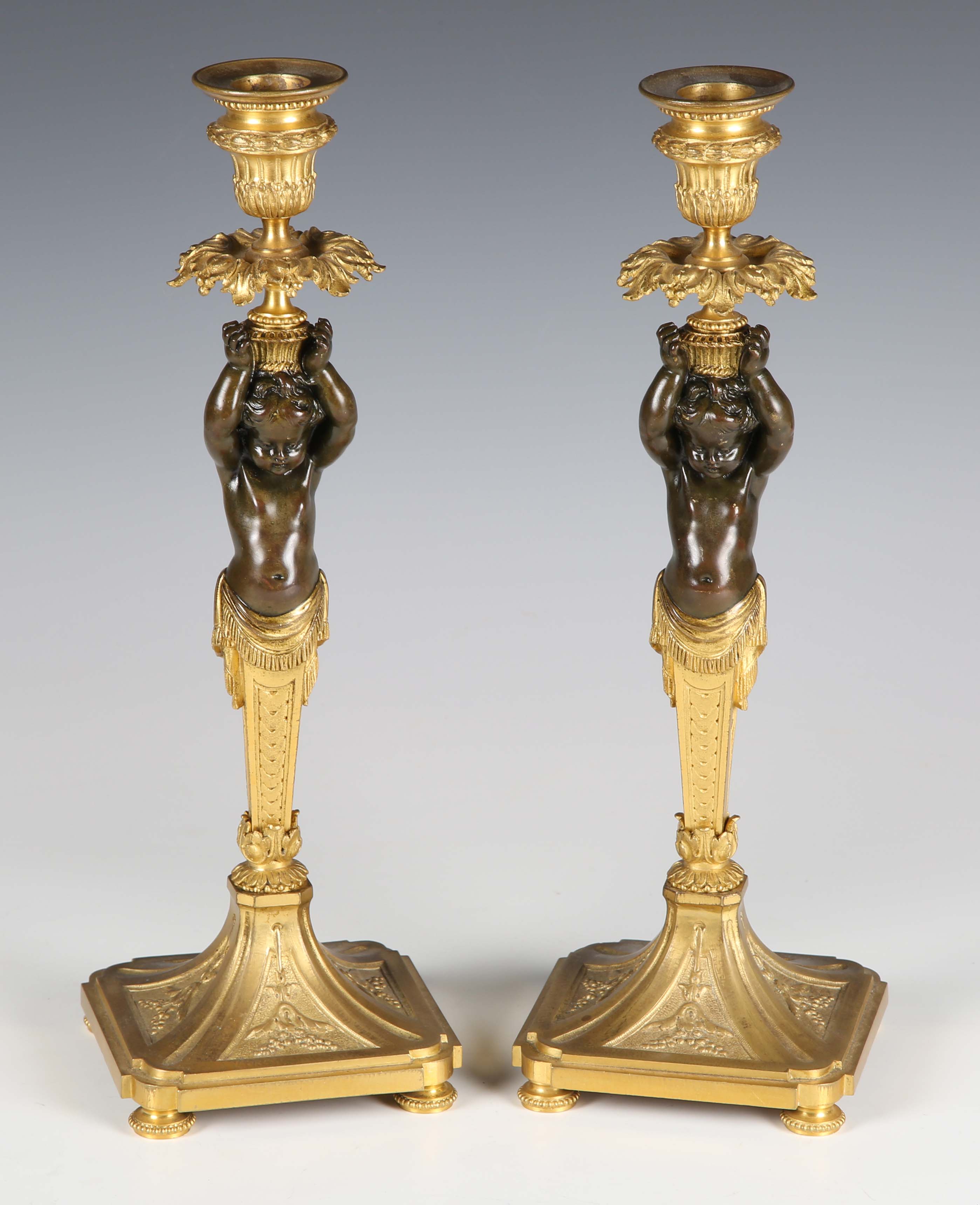 A pair of late 19th/early 20th century French Neoclassical Revival cast ormolu and brown patinated bronze candlesticks with figural herm stems, height 31.5cm.