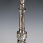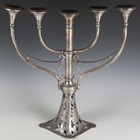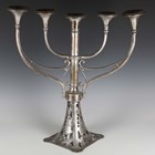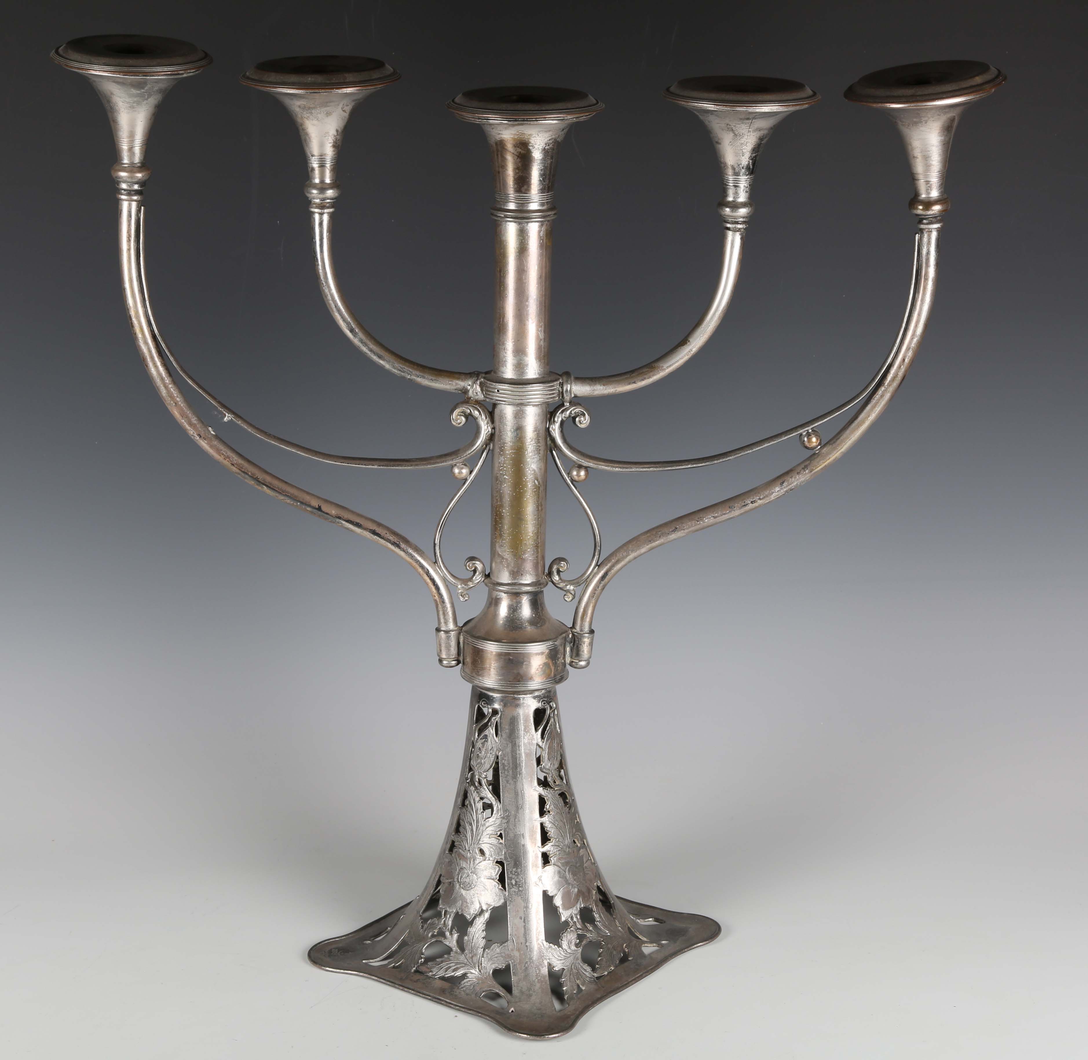 An Art Nouveau EPNS five-light candelabrum, raised on a flared base pierced with foliage, height 52cm.