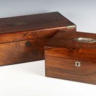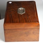 A Victorian rosewood and brass bound writing slope, width 50.5cm, together with a Victorian walnut jewellery box, width 30cm.