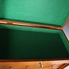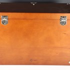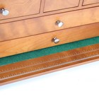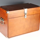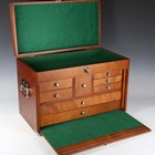 A modern wooden and metal bound collector's chest with hinged lid and fall front, width 51cm.