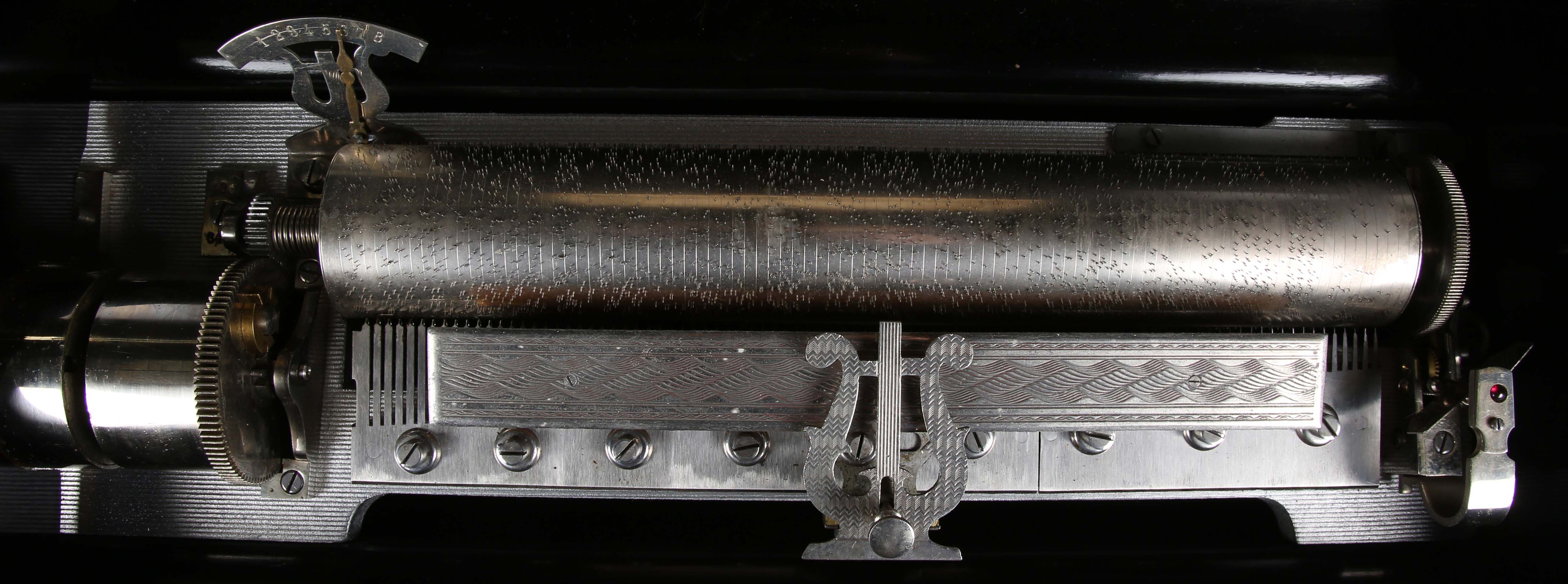 A 19th century Swiss music box, the lever-wind mechanism playing eight airs on a 33.5cm cylinder, the tune sheet and movement numbered '42934', within a rosewood and kingwood case, width 63.5cm.