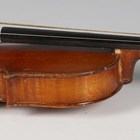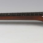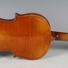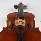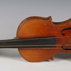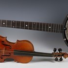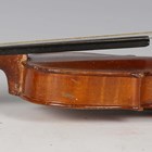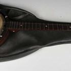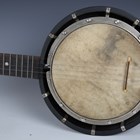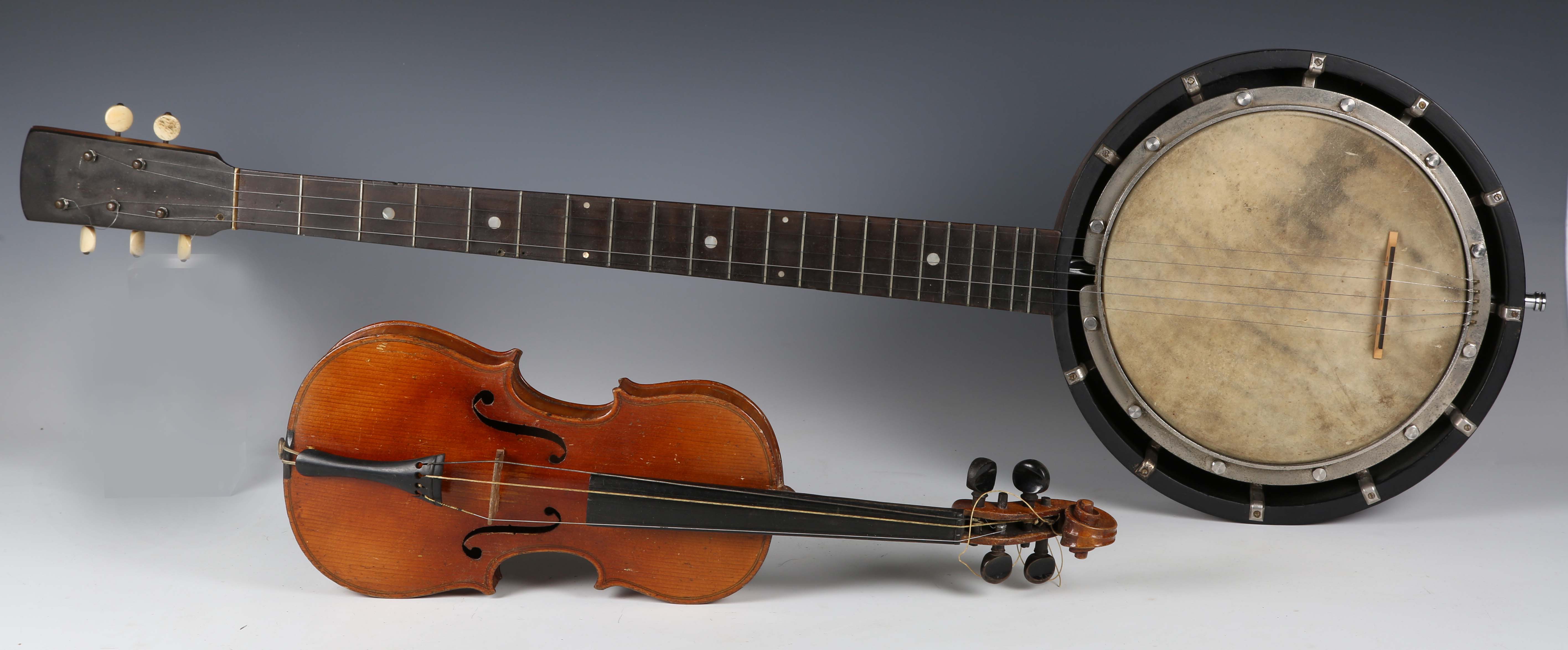 An early 20th century five-string banjo with rosewood back, length 93cm, together with a child's violin, length of back excluding button 27.5cm, cased with a bow.