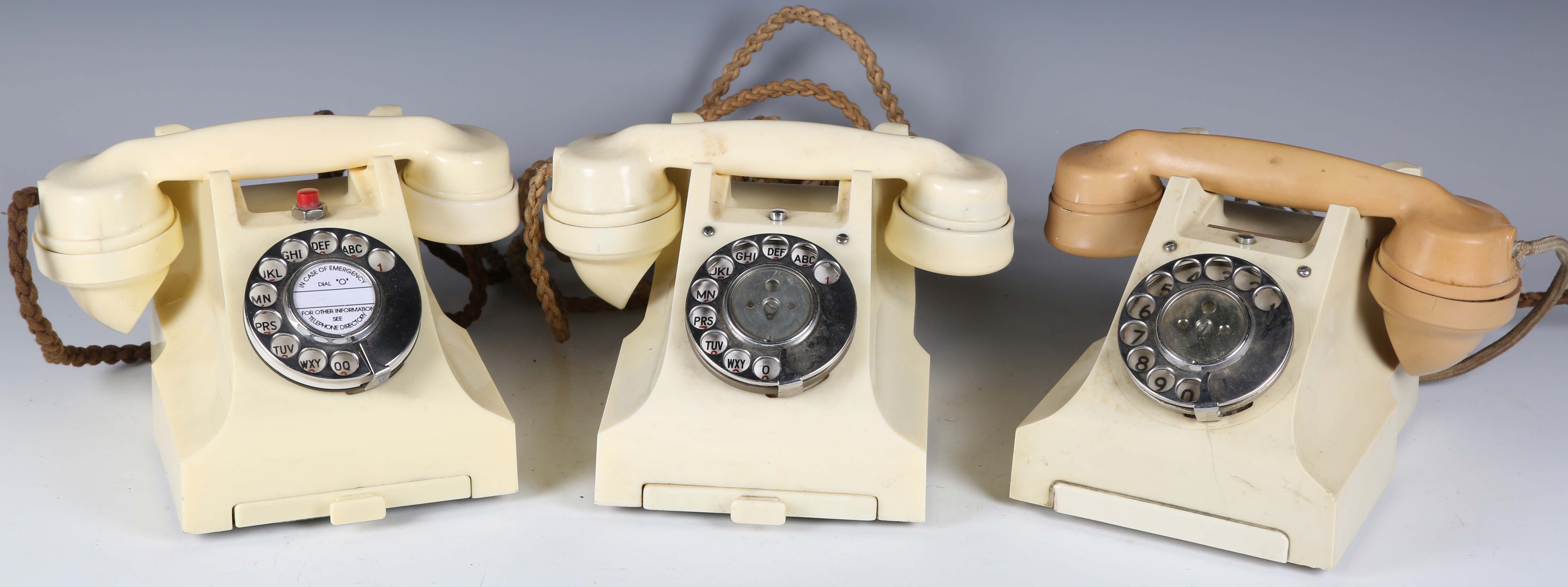 A group of three ivory plastic cased 300 series telephones.