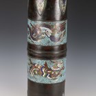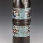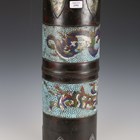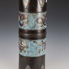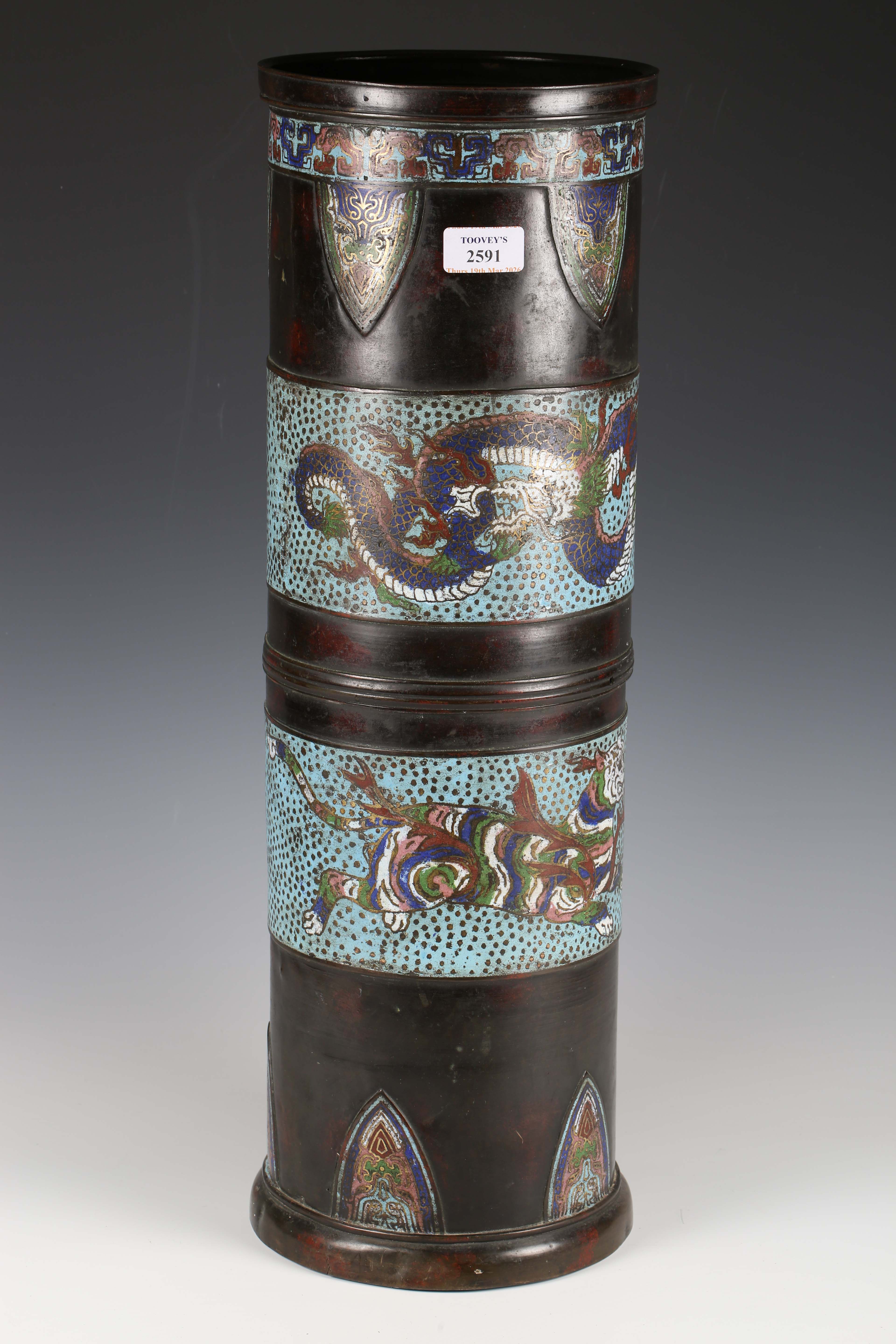 A 20th century Chinese bronze and champlevé enamel cylindrical stick stand, height 59cm.