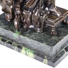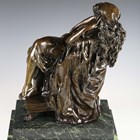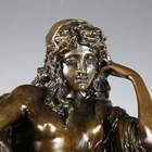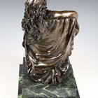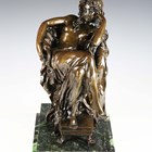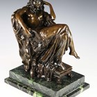 After Jean-Baptiste Carpeaux - a late 20th century brown patinated cast bronze figure of a classical lady reclining in a cloth-draped chair, raised on a stepped green hardstone plinth, height 40cm.