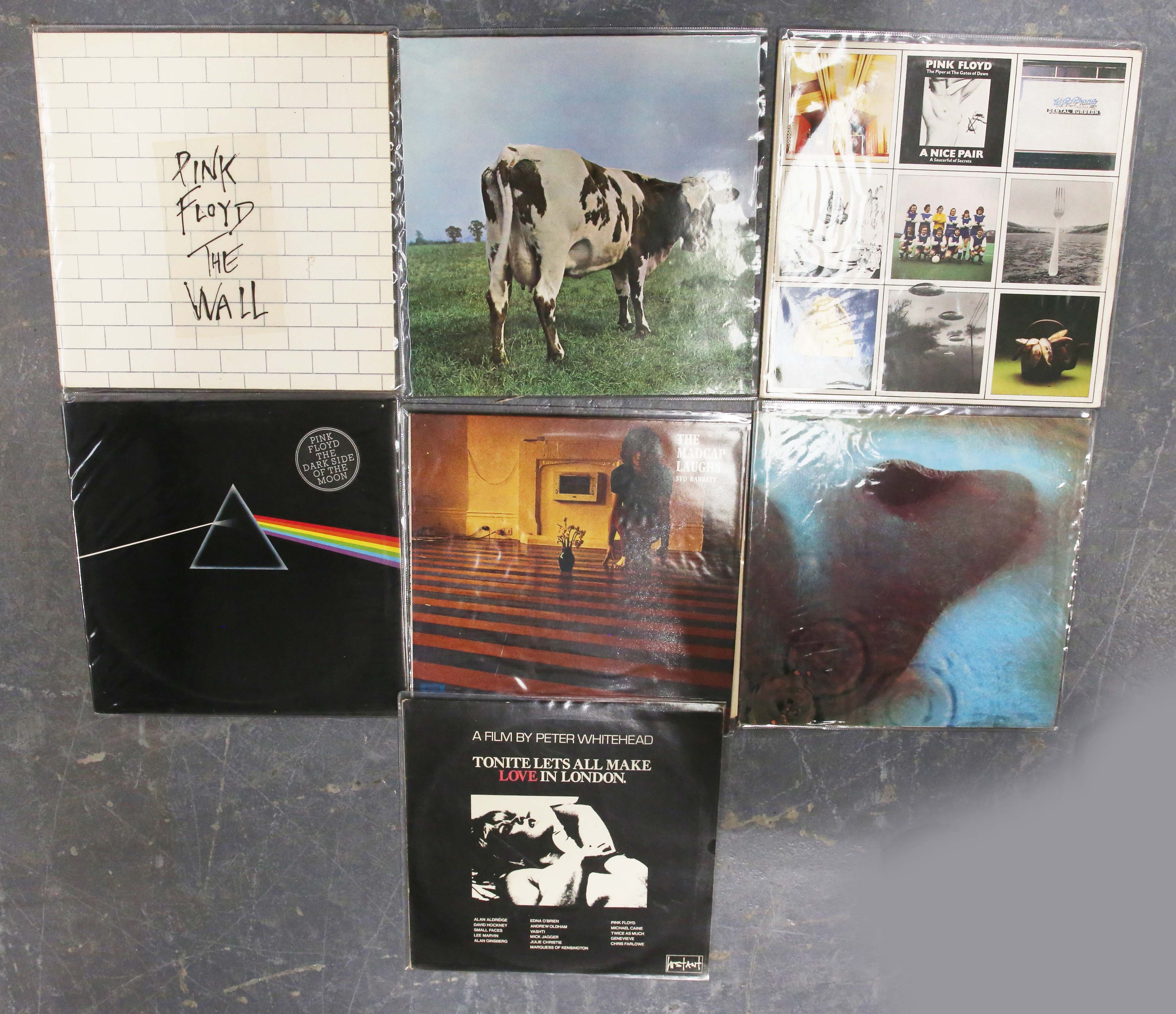 A collection of approximately fifty LP records, including albums by Pink Floyd, King Crimson, Yes, Emerson, Lake and Palmer, Manfred Mann's Earth Band, Supertramp, Mogul Thrash, Floating World and Jade Warrior.
