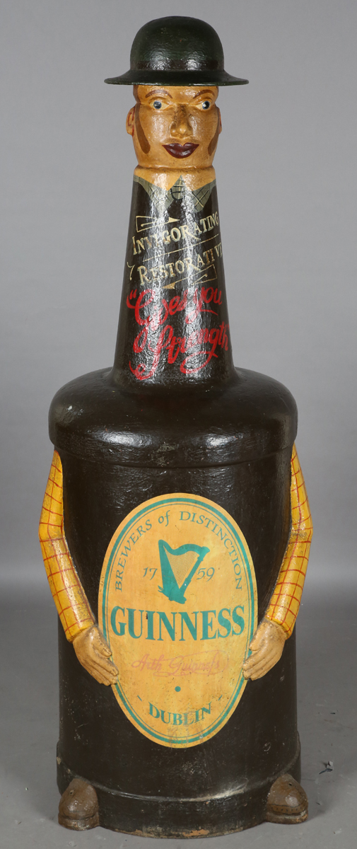 A large floor-standing fibreglass Guinness advertising model of a figural bottle, height 160cm.