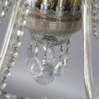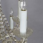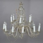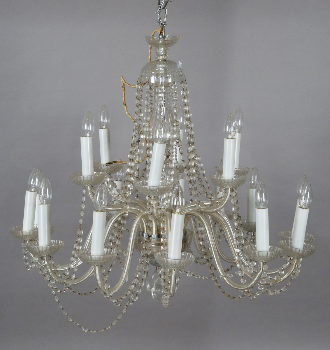 A 20th century clear glass eighteen-light chandelier, hung with bead swags and shaped drops, height 77cm, width 85cm.