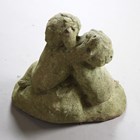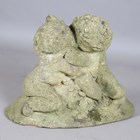 A mid-20th century composition stone garden figure group of two embracing putti, width 60cm.