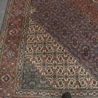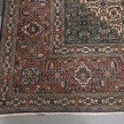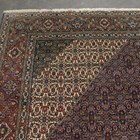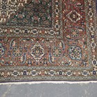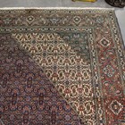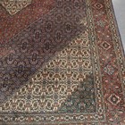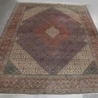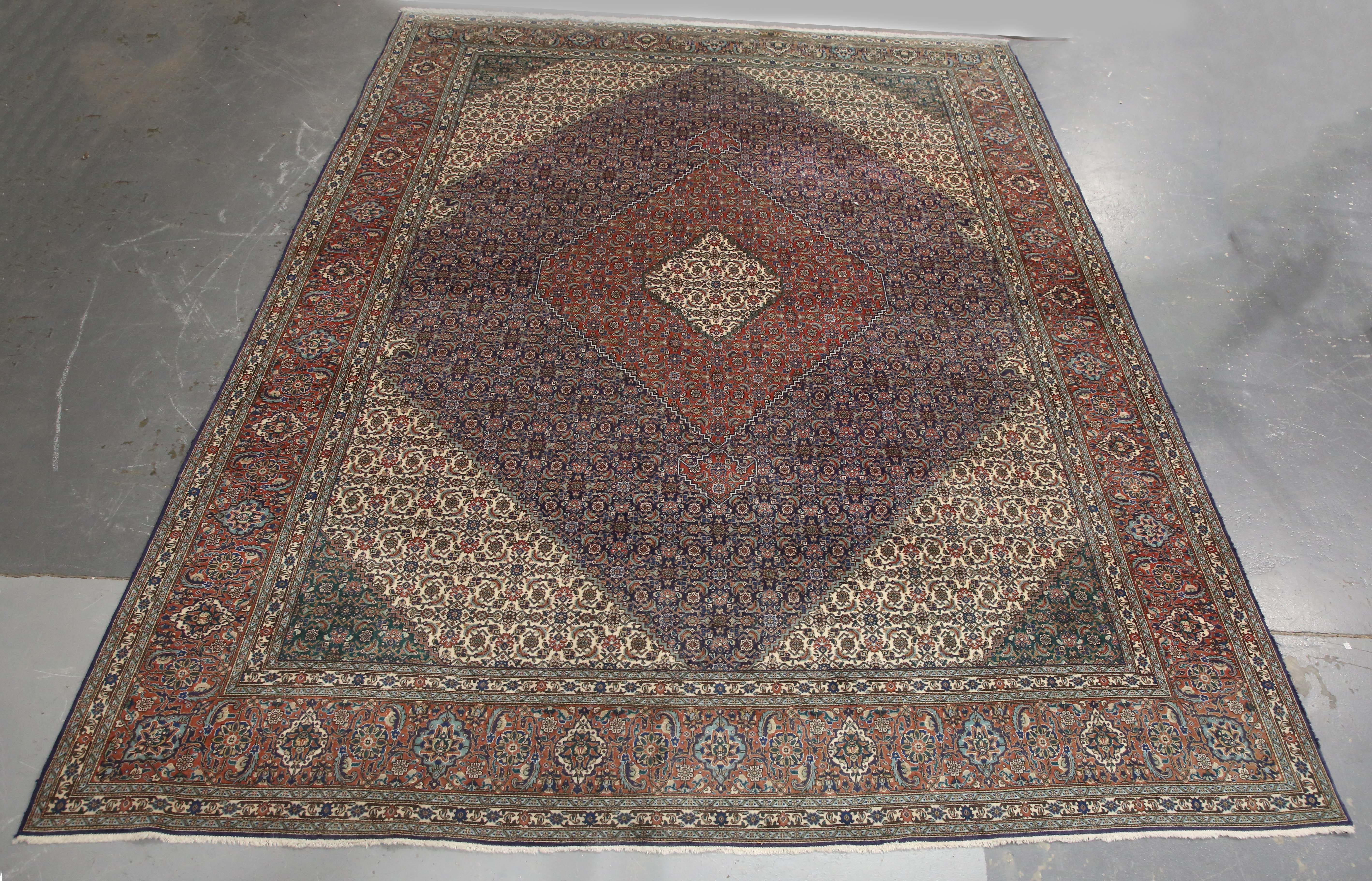 A Tabriz carpet, Central Persia, mid-20th century, the dark blue field with a stepped medallion and ivory spandrels, all with overall herati, within a terracotta palmette and leaf border, 406cm x 302cm.