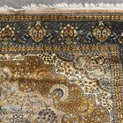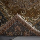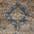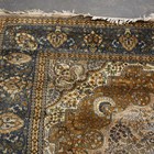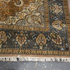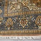 An Indian carpet, late 20th century, the taupe field with a shaped medallion, within a blue palmette and trailing vine border, 356cm x 279cm.