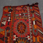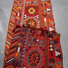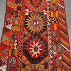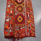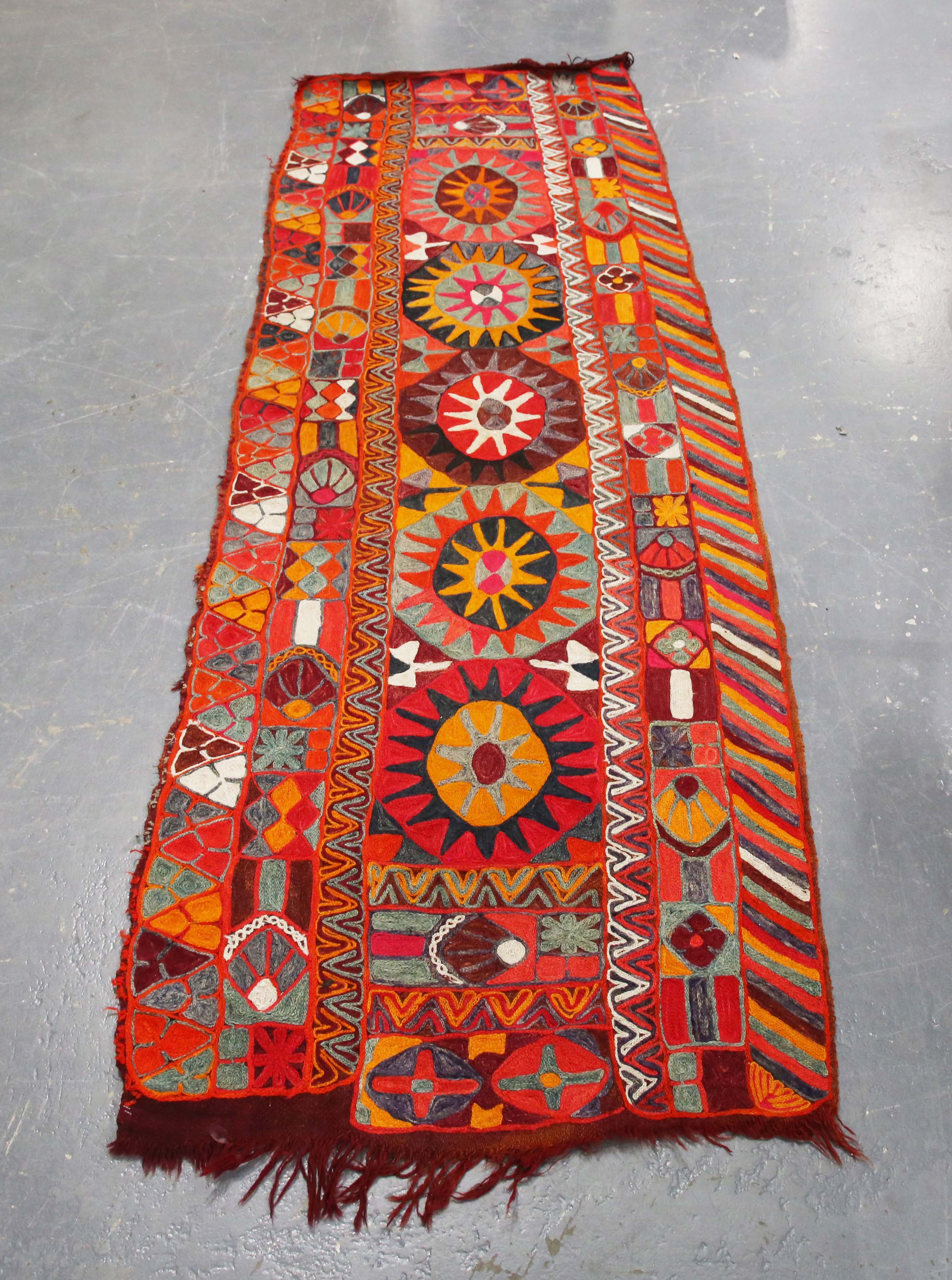 A Marsh Arab flatweave runner, Southern Iraq, late 20th century, the polychrome field with five star medallions, within a palmette border, 251cm x 81cm.