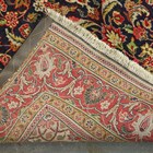 A Sarough rug, Central Persia, late 20th century, the dark blue field with a shaped medallion, supported by scrolling vines, palmettes and leaves, within a red complimentary border, 267cm x 132cm.
