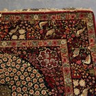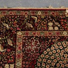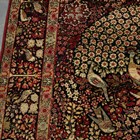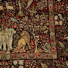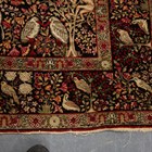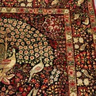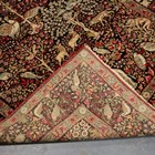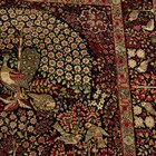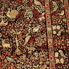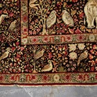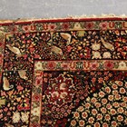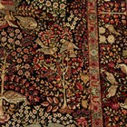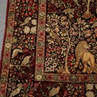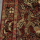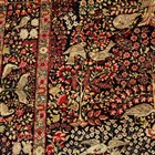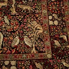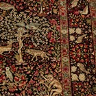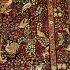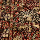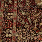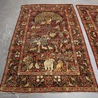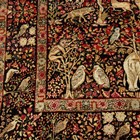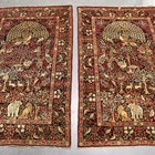 A pair of Kerman prayer rugs, Central Persia, early 20th century, the charcoal mihrabs with scenes of ascending trees and plants, populated by an elephant, lion, monkey, peacock, turkey, deer, turtle and other animals, within a complimentary border, 233cm x 146cm.