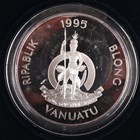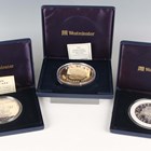 A group of three Westminster Mint silver proof and five-ounce silver commemorative coins, including a Vanuatu one hundred vatu 1995 celebrating Queen Elizabeth The Queen Mother, Lady of the Century, each cased, two with certificates.