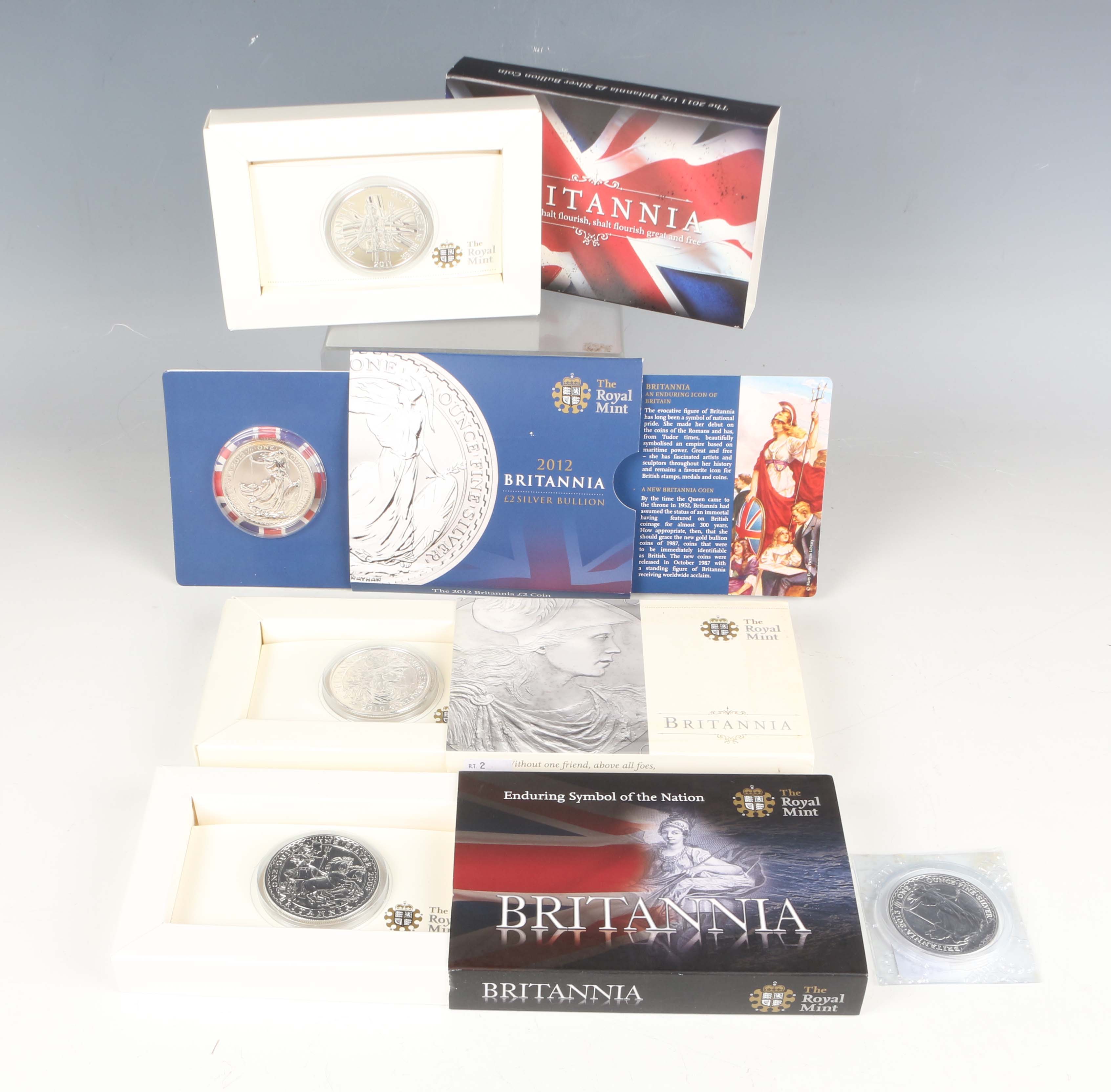 A group of five Elizabeth II Royal Mint silver Britannia two pounds, comprising 2009, 2010, 2011, 2012 and 2013.