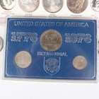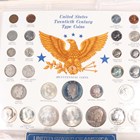 A collection of USA coinage, comprising a displayed group of twenty-eight coins, including a Morgan dollar 1904 (uncirculated), a Peace dollar 1923 (uncirculated) and a Liberty Walking half-dollar 1945 (uncirculated), cased, a Bicentennial 1776-1976 three-coin set and two further Morgan dollars, comprising 1885 New Orleans Mint and 1887.