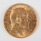 An Edward VII sovereign 1906. Note: this lot includes an HMRC?classified investment gold coin and is sold under standard VAT (not margin scheme). The hammer price is VAT?exempt. VAT is charged only on the Buyer’s Premium, shown separately, and may be recoverable depending on the buyer’s VAT status.