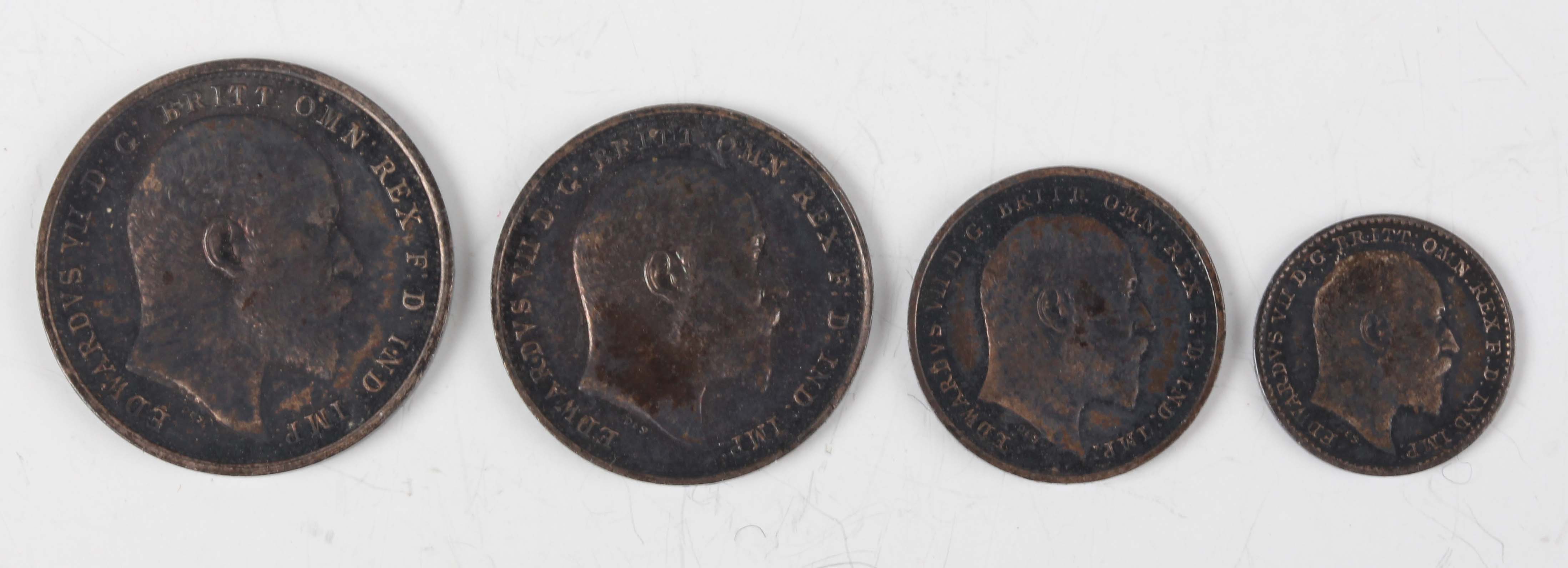 An Edward VII Maundy four-coin set 1903 (loose but uncirculated with darker tone throughout).