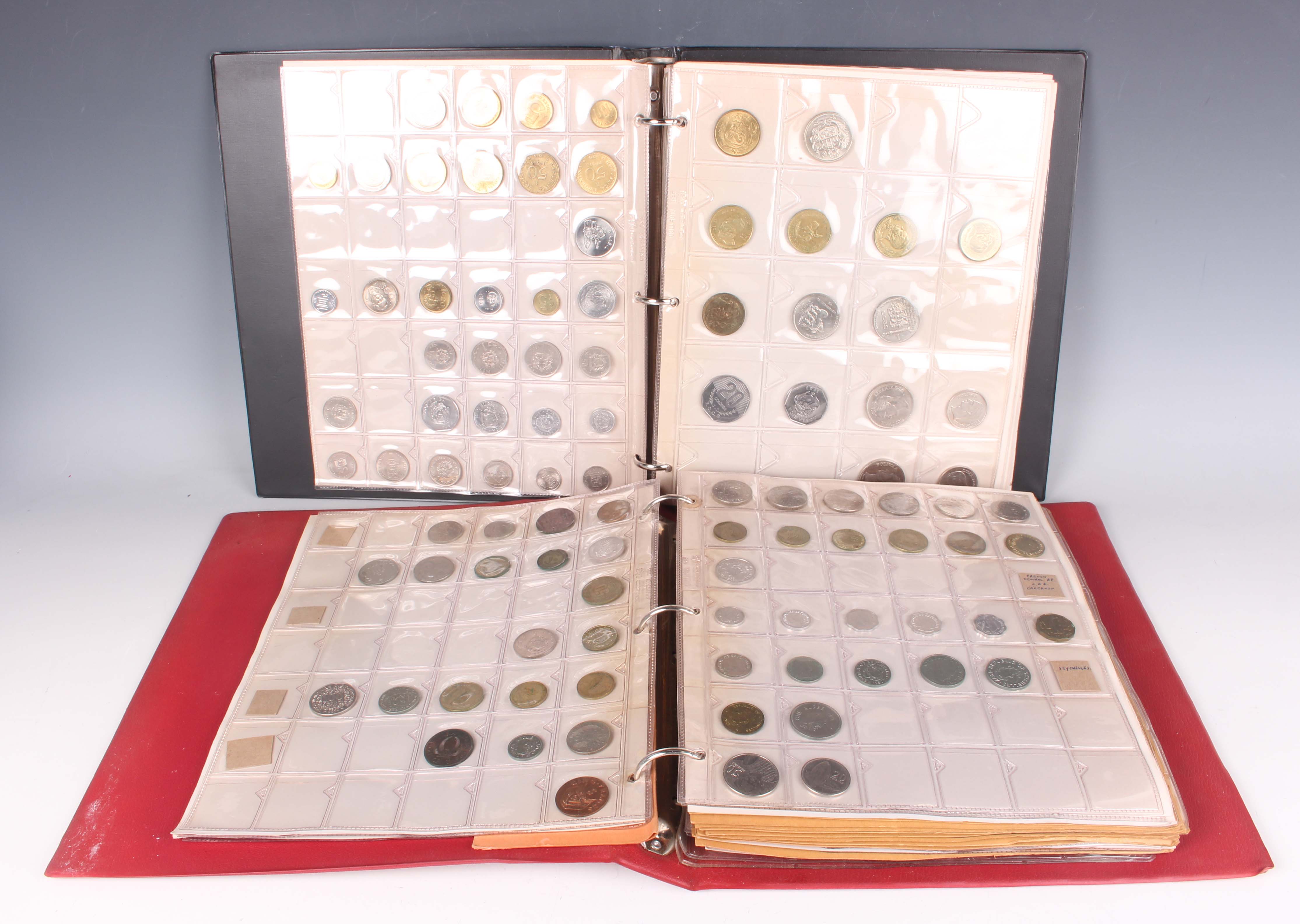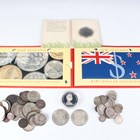 A large collection of European and world coinage, including two Mexico silver twenty-five pesos, a Bailiwick of Guernsey silver twenty-five pence celebrating the royal visit 1978, and two New Zealand commemorative coin/banknote combination sets, both 1990.