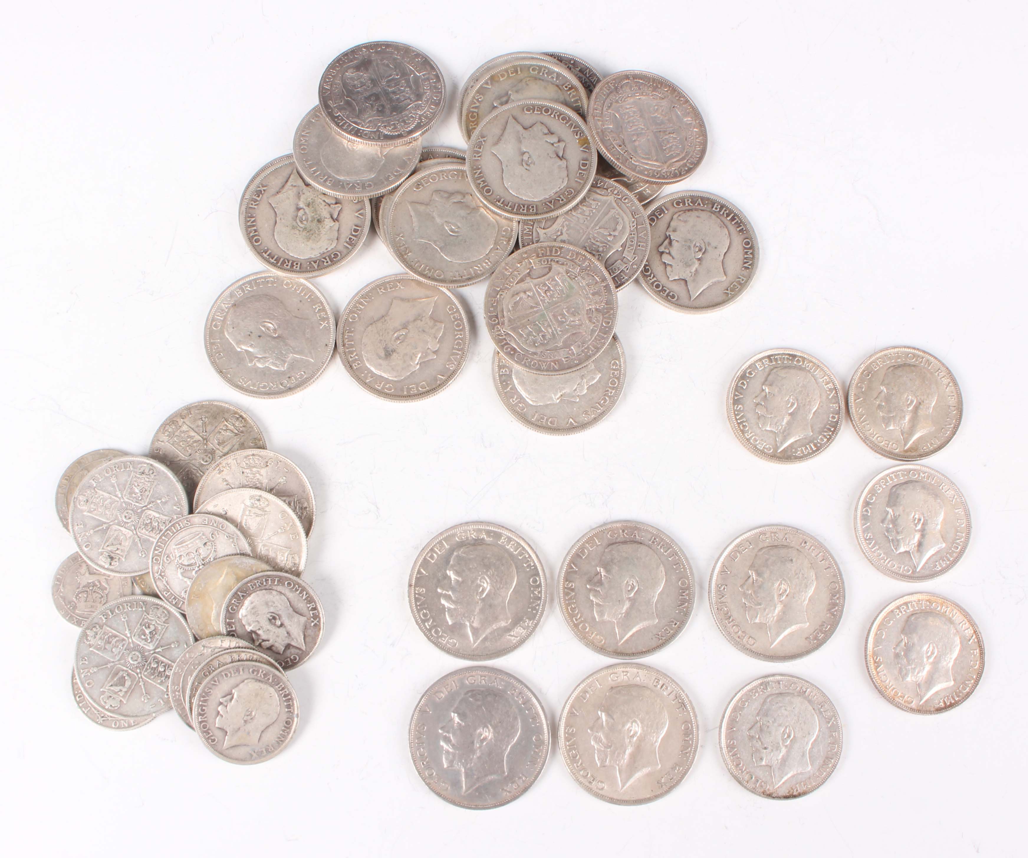 A large collection of George V silver coinage, including half-crowns, florins and shillings (good-very fine throughout).