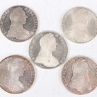 A group of five silver Maria Theresa thaler restrikes, all dated 1780.