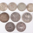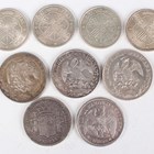 A group of six Spain one hundred pesetas, all 1966, together with a Spain silver five pesetas 1870, a Republic of Chile silver one peso 1885 and three Republic of Mexico silver eight reals, 1842, 1885 and 1894.