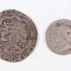 An Edward IV hammered silver groat 1461-1470, first reign, light coinage, York Mint, with facing crowned bust, quatrefoils at neck, Lombardic 'E' on breast, Sp 2012, together with a James II threepence 1686, Sp 3415.