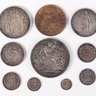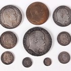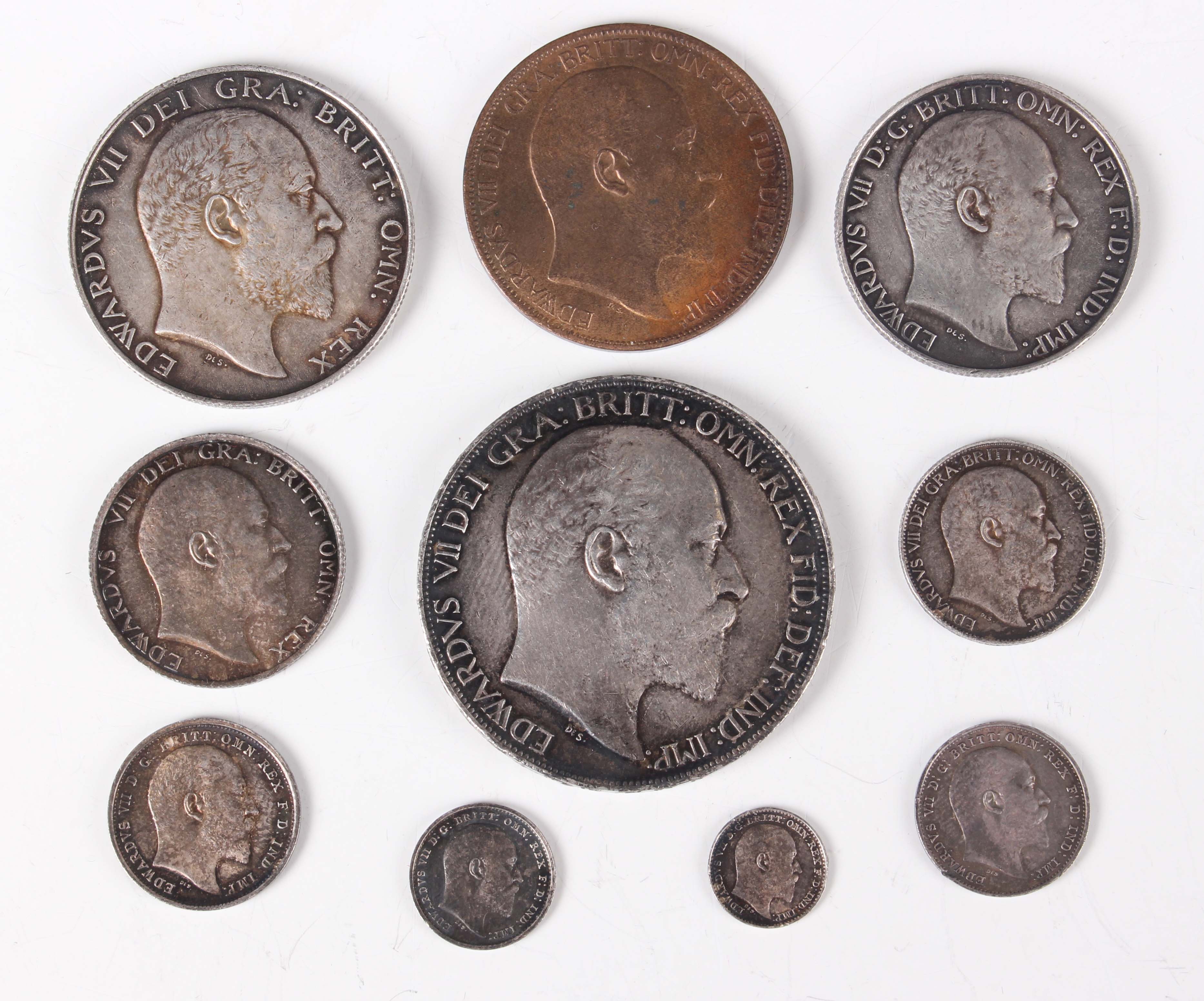 An Edward VII silver nine-coin set, comprising crown, half-crown, florin, shilling, sixpence, Maundy fourpence, threepence, twopence and penny, all 1902 (fine-extremely fine but dark-toned throughout, penny with some subdued lustre).