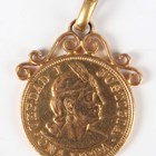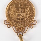 A Peru gold una libra 1903 in a pendant mount with scrolling suspension.