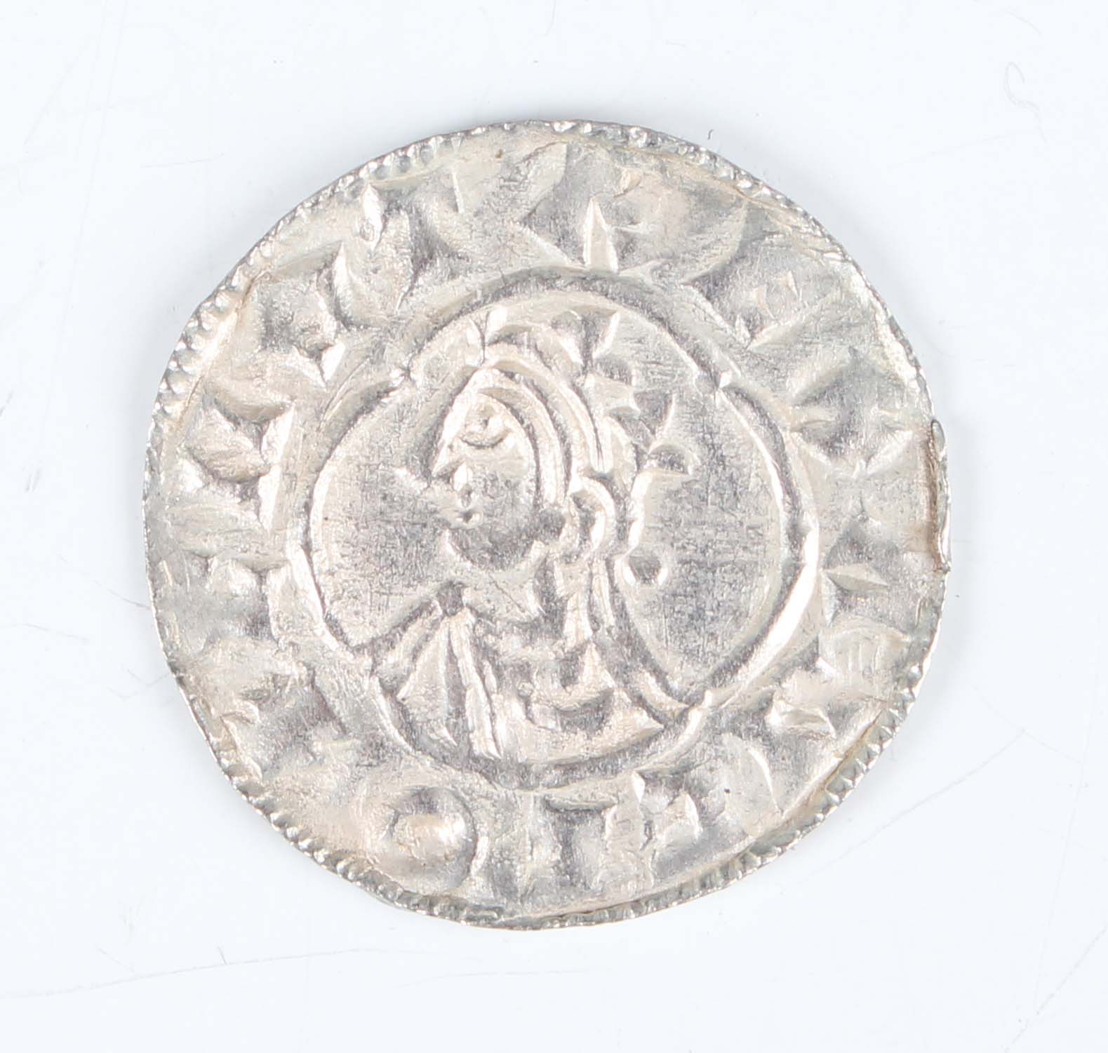 A Cnut hammered silver penny 1016-1035, quatrefoil type 1017-1023, moneyer 'Cnight on Gran', Cambridge Mint, Sp 1157 (extremely fine, bright silver, probably a hoard coin).