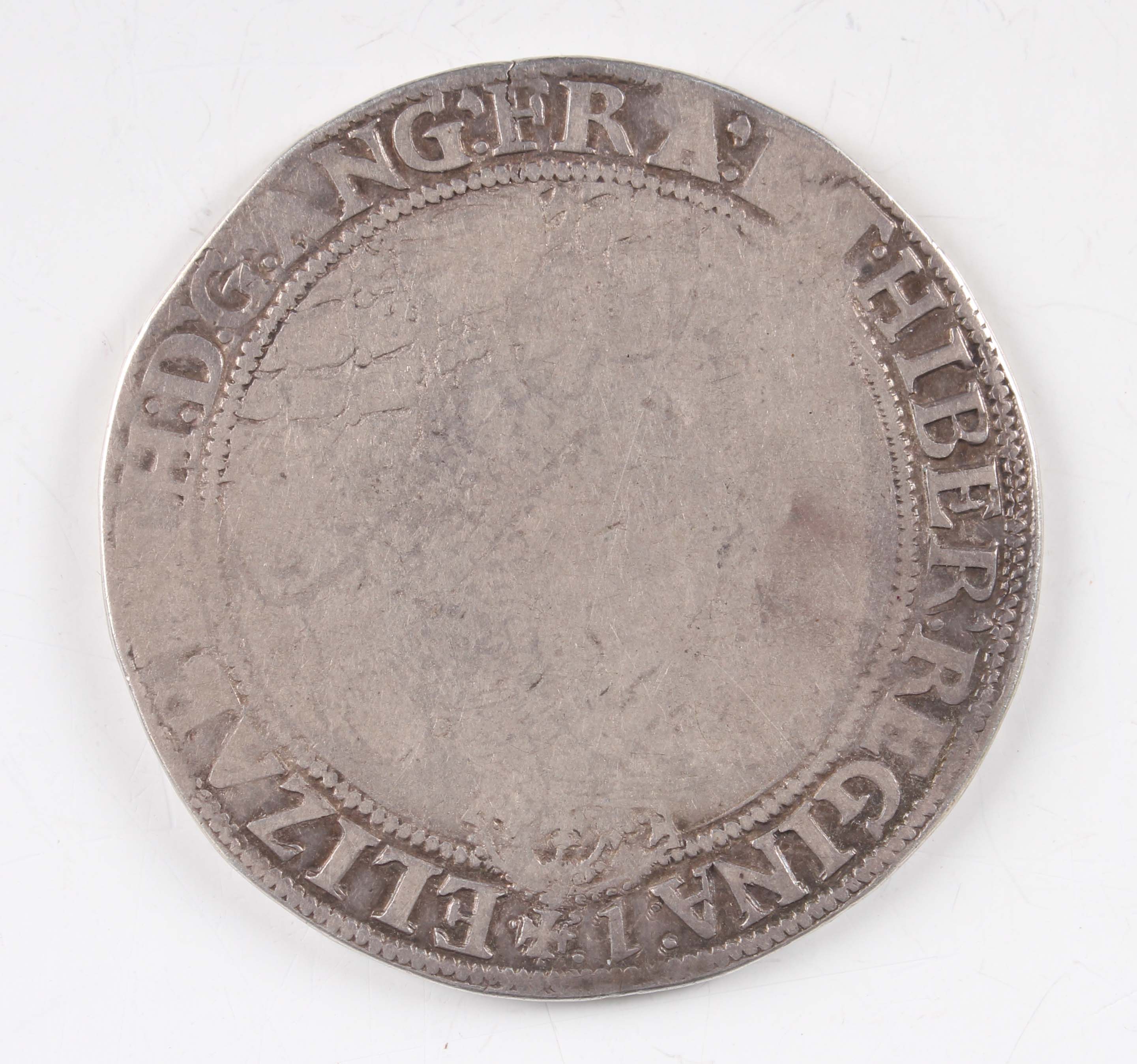 An Elizabeth I hammered silver crown 1558-1603, seventh issue 1601-1602, obverse with half-length bust holding sceptre, reverse with shield on cross, mintmark 1, Sp 2582 (good-fine, worn overall, bright silver, perhaps used as a touchpiece at some time).