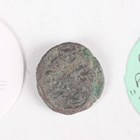 A scarce Iron Age Britain/Gaul copper-alloy/bronze unit, boar-cock type, obverse with crescent torc-like design, possibly a stylized boar, reverse with standing cock with prominent tail and legs (overall quite porous surface but general design features prominent, a rare offering). Note: found in West Sussex and recorded on the find.org database: SUSS-BF915C.
