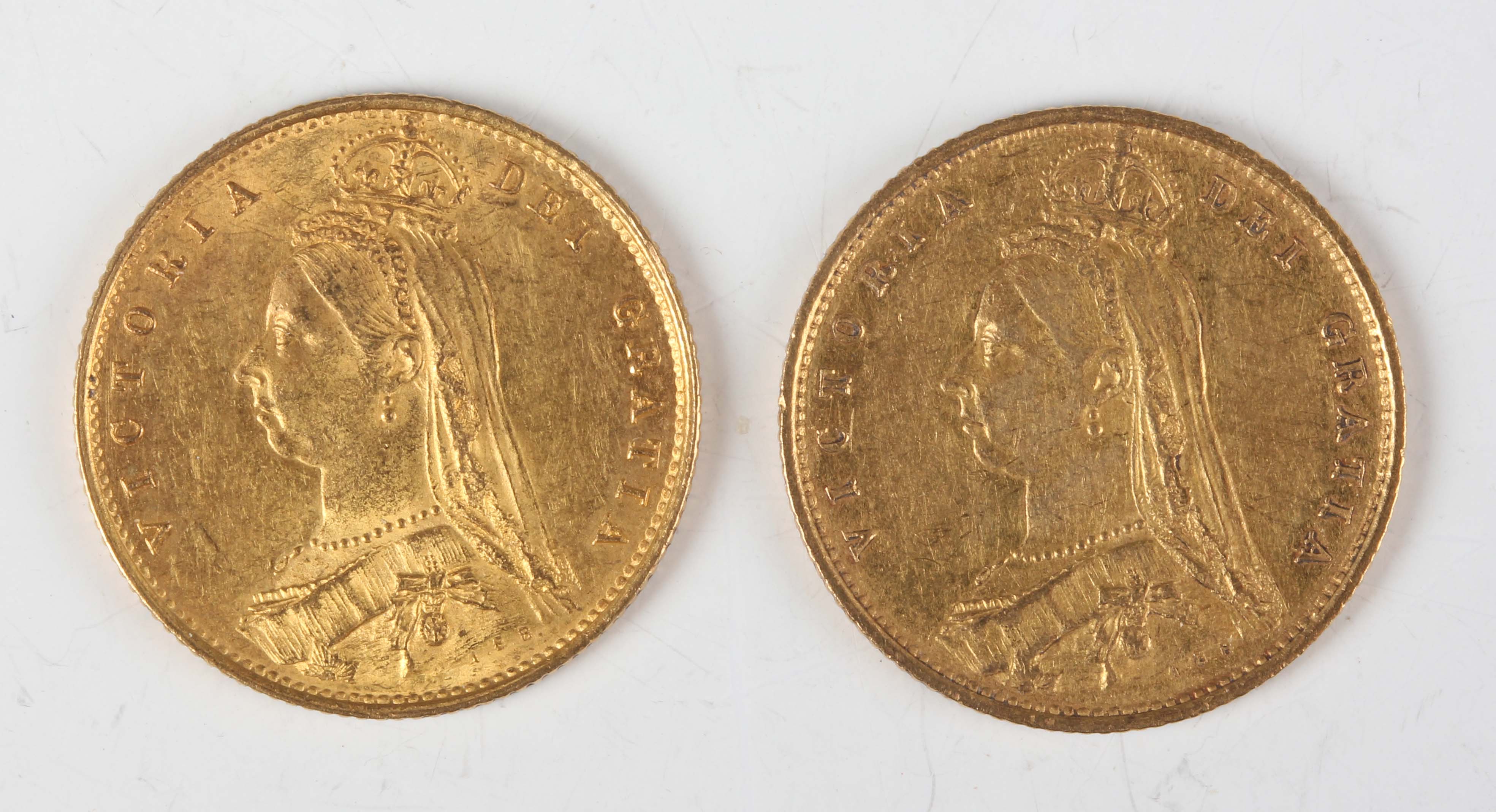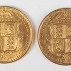 Two Victoria Jubilee Head shield back half-sovereigns 1887. Note: this lot includes an HMRC?classified investment gold coin and is sold under standard VAT (not margin scheme). The hammer price is VAT?exempt. VAT is charged only on the Buyer’s Premium, which is shown separately, and may be recoverable depending on the buyer’s VAT status.