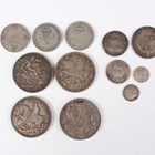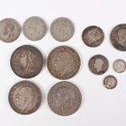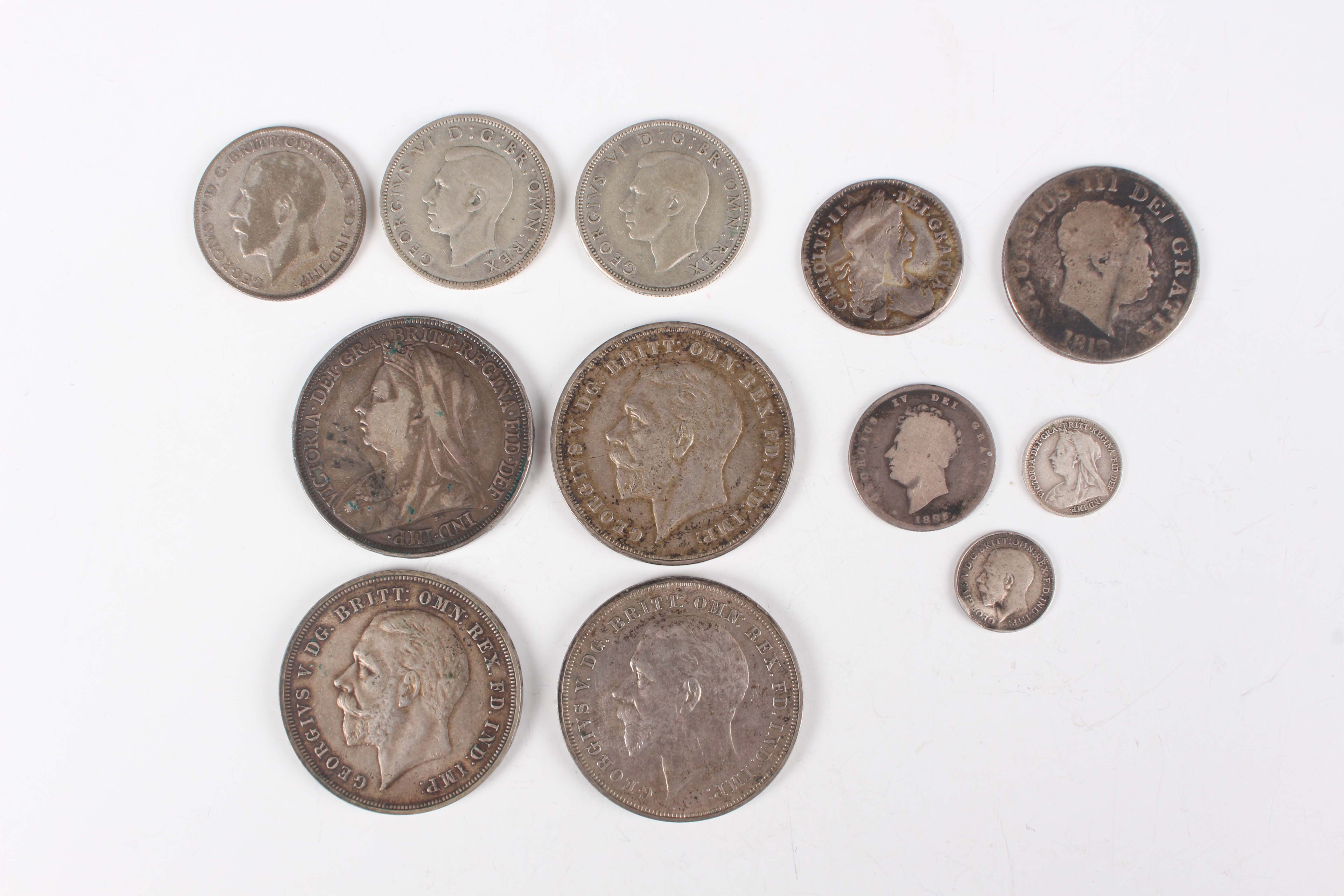 A small collection of British silver and silver nickel coinage, including a Victoria Veiled Head crown 1897, edge detailed 'LX' with star stop, and three George V crowns 1935.