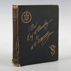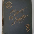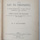 PRESENTATION COPY. – Helena Petrovna BLAVATSKY. The Key to Theosophy. London: The Theosophical Publishing Company, Limited, [1889.] Inscribed in ink on the title-page ‘With the author’s compliments’, 8vo (208 x 161mm.) Title, ‘Preface’, 14pp. publisher’s advertisements to rear. (Browned to margins, lacking half-title.) Original blue cloth with the Theosophical seal, the gilt ouroboros, Seal of Solomon, the Ankh and the Om, and gilt lettering to upper cover (wear to spine ends and upper joint, inner hinge slightly weakened). Note: written towards the end of her life, Blavatsky used a question and answer format to expound upon the foundational principles of Theosophy. It not being, for example, a conventional religion but an attempt to unite humanity under common principles of brotherhood and ancient truths that have shaped human thought. Provenance: The Aquarian Book Service (ink stamp to title).