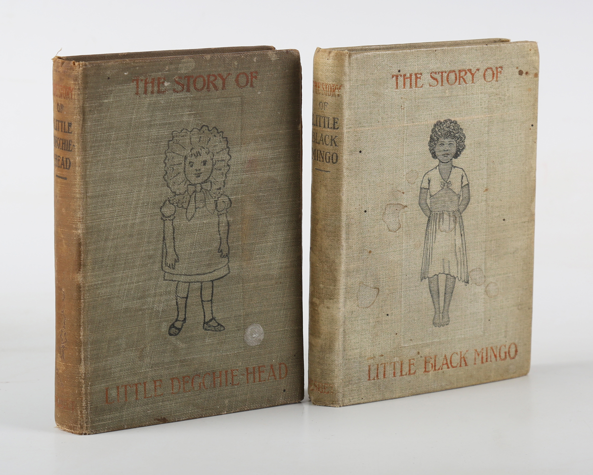 [BANNERMAN, Helen.] The Story of Little Degchie-head. An Awful Warning to Bad Bears. London: James Nesbit, 1903. First edition, 12mo (126 x 83mm.) 36 colour illustrations by the author. (Toning, inner hinge broken.) Original olive cloth (small stains to upper cover, lettering faded). – And a further volume by Helen Bannerman (‘The Story of Little Black Mingo’, [1902], 12mo) (2).