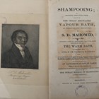 MAHOMED, Sake Dean. Shampooing; or, Benefits Resulting from the use of the Indian Medicated Vapour Bath. Brighton: William Fleet, 1838. Third edition, 8vo (213 x 135mm.) Engraved portrait frontispiece, 1 aquatint plate, 27pp. list of subscribers, 9pp. ‘Index’. (Lacking 1 plate, crease to frontispiece, stamps to preliminaries, offsetting to title, first quire loosening.) Contemporary cloth (upper cover detached). Provenance: West Sussex Reference Library (stamps to pastedowns). – And a further three volumes (John Gibney’s ‘Practical Observations on the Use and Abuse of Cold and Warm Sea-Bathing, in Various Diseases’, second edition, 1814, small 4to, and [John Feltham’s] ‘A Guide to all the Watering and Sea Bathing Places’, [circa 1820], 12mo, and J.D. Parry’s ‘An Historical and Descriptive Account of the Coast of Sussex’, 1833, 8vo) (4).