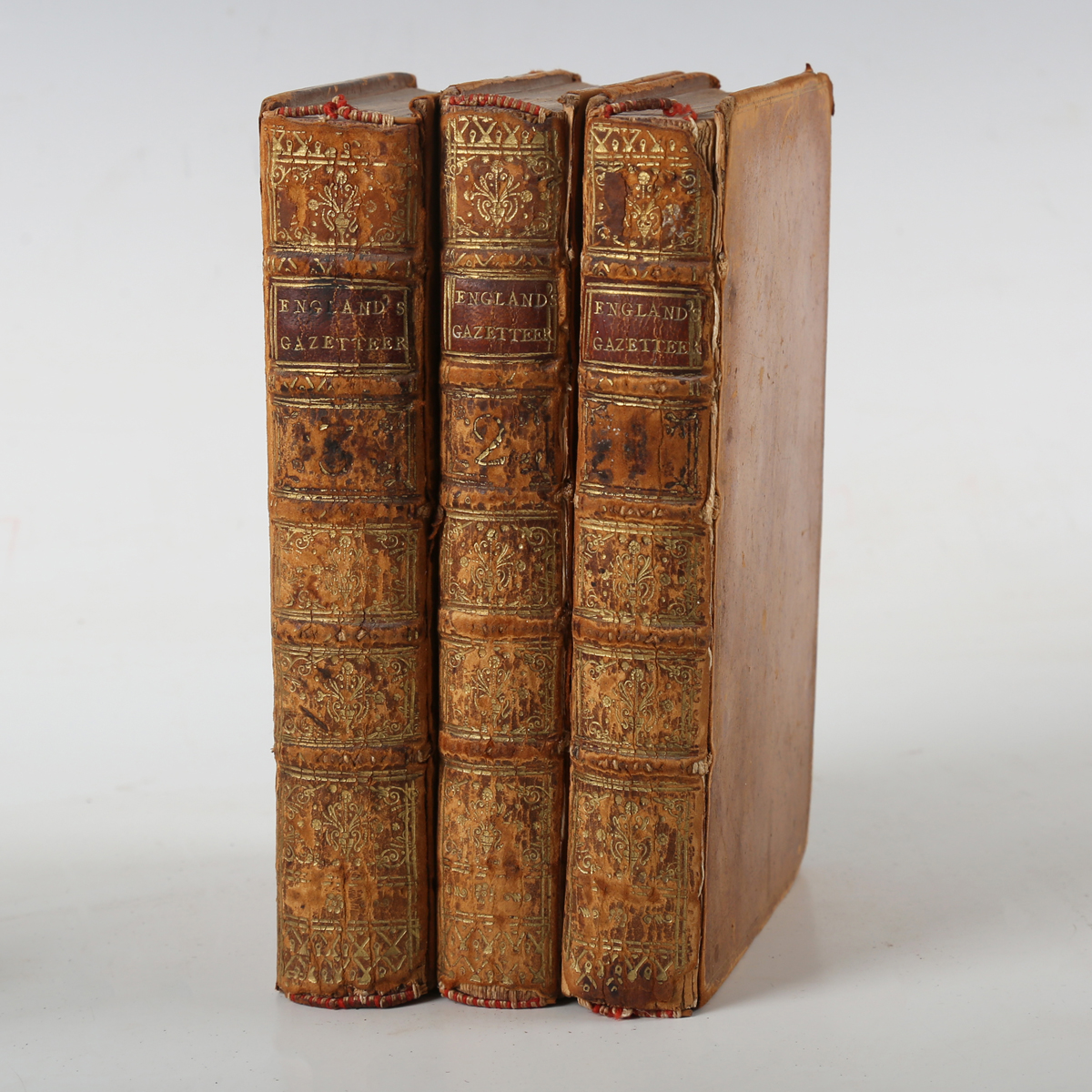 WHATLEY, Stephen. England’s Gazetteer; or, an Accurate Description of all the Cities, Towns, and Villages of the Kingdom. London: J. and P. Knapton, D. Browne et al., 1751. 3 vols., first edition, 8vo (170 x 100mm.) Titles. (Light browning.) Contemporary calf, brown morocco lettering pieces to the spines (rubbing to extremities, minor loss to spine ends, hinges slightly weakened). Provenance: Archibald Grant, M.P. (armorial bookplates to front pastedowns, and ink name to titles) (3).