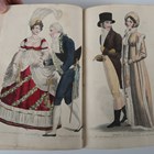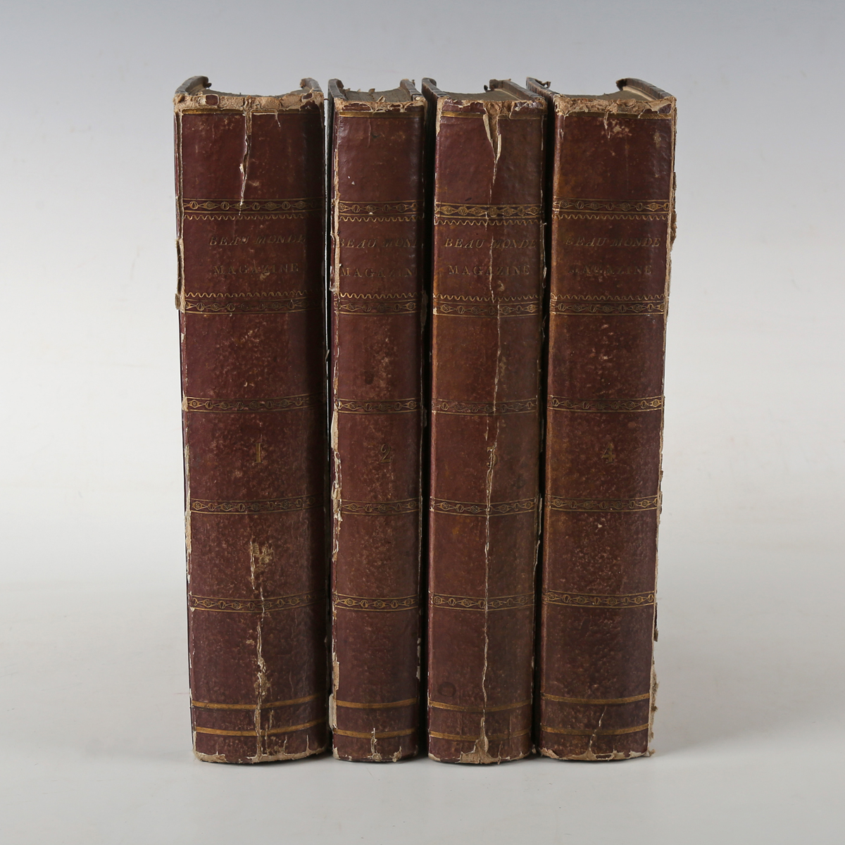 FASHION. Le Beau Monde; or, Literary and Fashionable Magazine. London: J.B. Bell and J. Decamp, Nov 1806-Jan 1809. 4 vols., 8vo (228 x 143mm.) 4 engraved frontispieces, 86 engraved plates including 39 hand-coloured, and 3 folding, engraved music, indices and supplements. (Lacking pp.293-296 in vol. 1, toning, occasional browning and offsetting.) Near contemporary marbled paper-covered boards (extremities rubbed, creasing and rubbing to spine panels).
