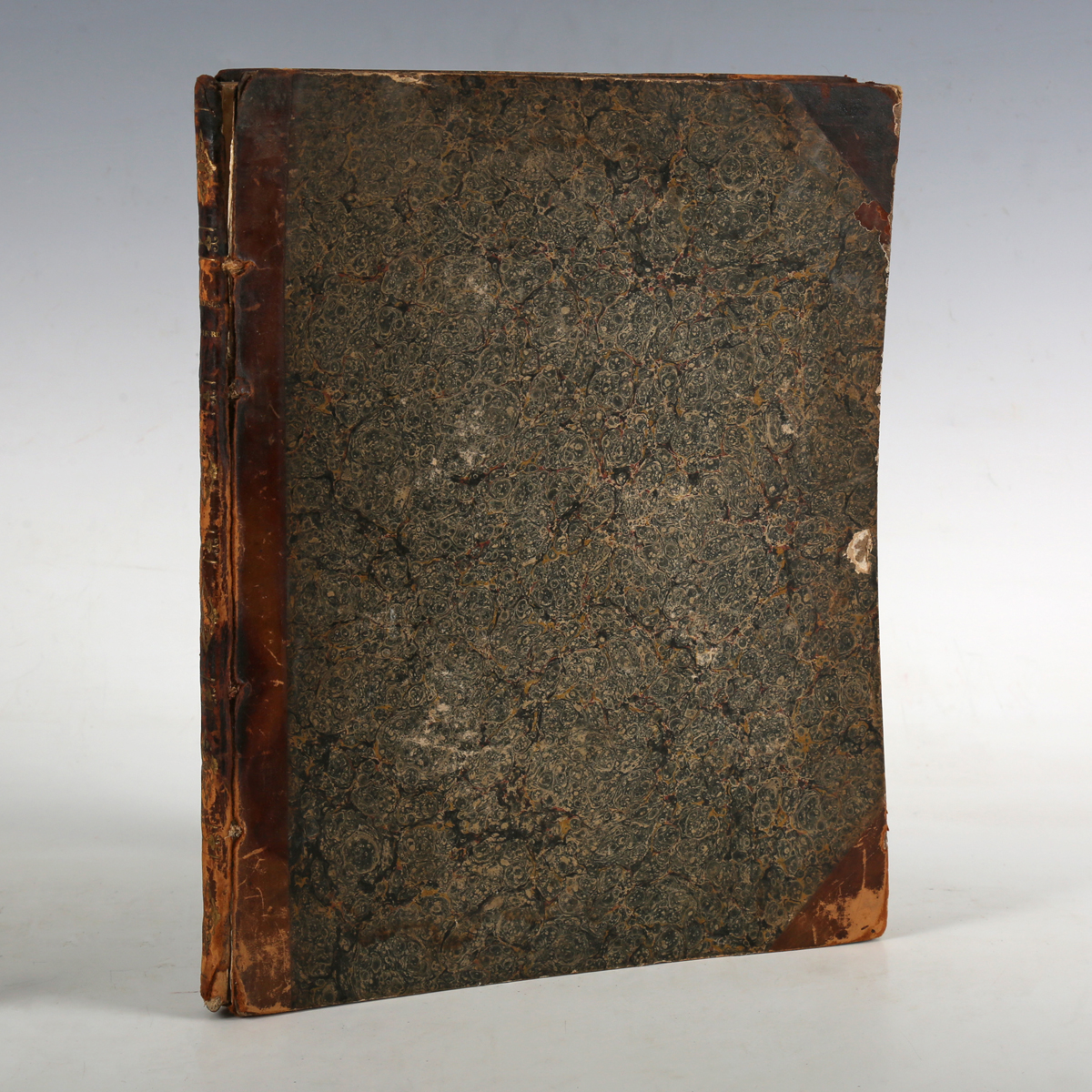 NORFOLK. – Joseph WILKINSON. The Architectural Remains of the Ancient Town and Borough of Thetford. In the Counties of Norfolk and Suffolk. London: Rodmell & Martin, [1822.] 4to (275 x 213mm.) Engraved title, 24 engraved plates from drawings by J. Wilkinson and etched by H. Davy. (Marginal spotting to plates, insect-damage to front pastedown.) Contemporary half calf over marbled paper-covered boards (rubbing, scuffing, upper joint splitting). Note: scarce. Provenance: W.H. Booth, Ipswich (bookplate to front pastedown).