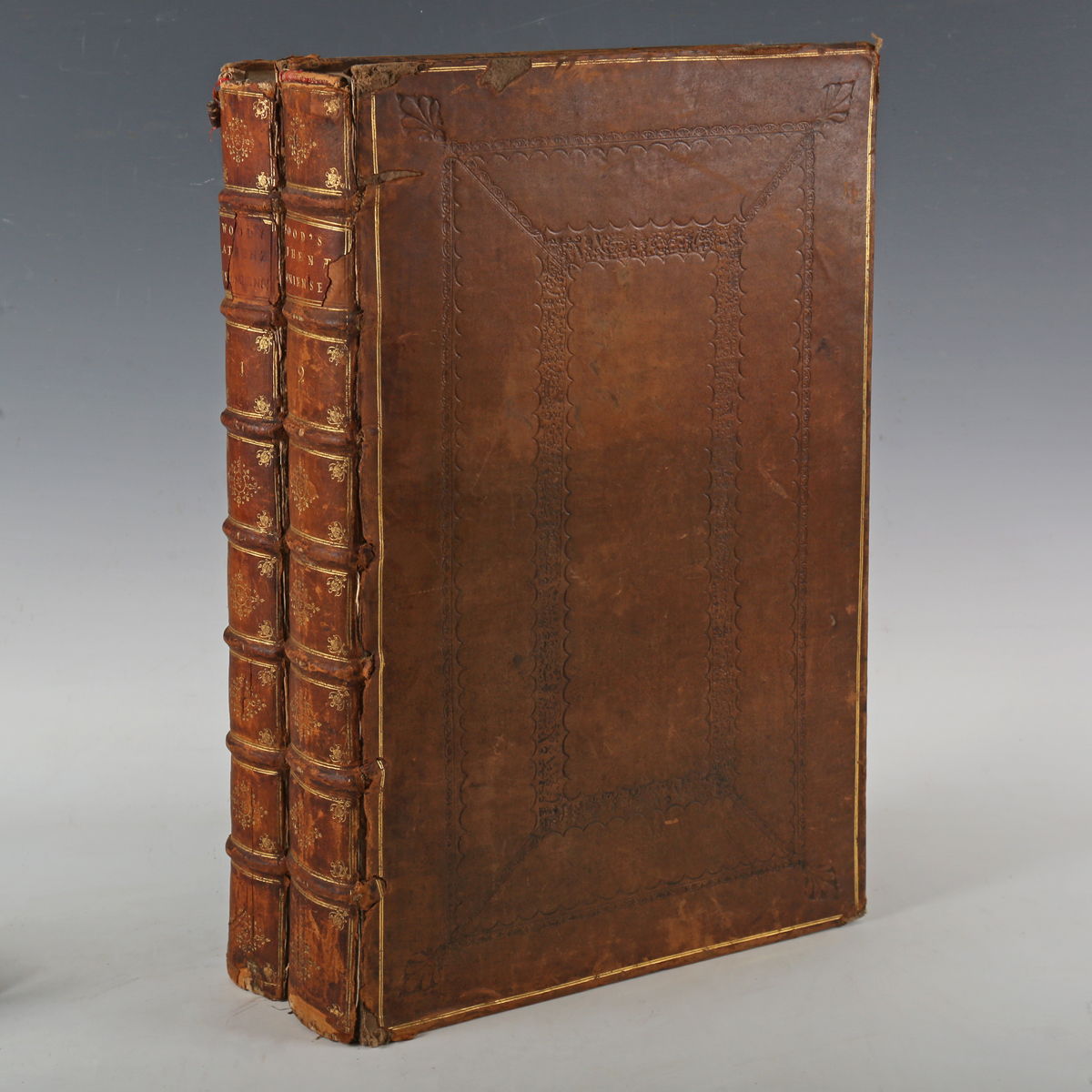 OXFORD. – Anthony WOOD. Athenae Oxonienses. An Exact History of all the Writers and Bishops Who have had their Education in the most Ancient and Famous University of Oxford. London: R. Knaplock, D. Midwinter, and J. Tonson, 1721. 2 vols., folio (449 x 284mm.) Titles in red and black, double-column text, 2pp. ‘Names of Subscribers’. (Light browning, marginal spotting to titles, crease to blanks.) Contemporary calf (joints splitting, extremities heavily rubbed, some loss to lettering pieces). Provenance: Joseph Astley, M.P. (armorial bookplate to front pastedown); William J. Oldfield (bookplate to front pastedown); Richard W. Goulding (ink name to front pastedown) (2).