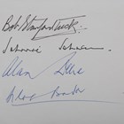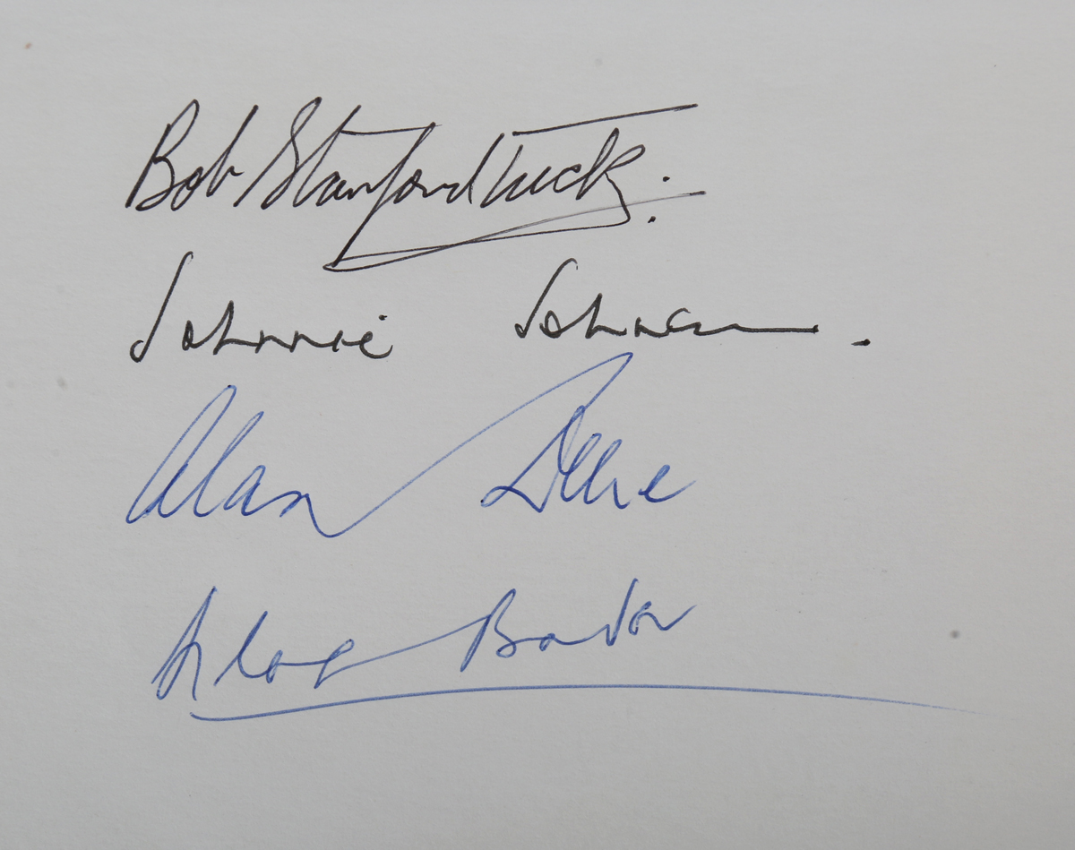 [BADER, Douglas.] The Manston Spitfire TB 752. Kent: Foreland Arts by Lanes, [n.d.] Limited edition, being number 29 of 100 copies signed by Douglas Bader, Alan C. Deere, James E. Johnson and Robert R. Stanford-Tuck, oblong 4to (210 x 294mm.) Photographic illustrations, 2 colour illustrations, signed by the pilots in ink verso the front-free endpaper, loosely-inserted certificate of authenticity from The Spitfire Memorial Fund, includes 4pp. booklet ‘A Profile of Four Legendary Fighter Pilots’. (Mild toning.) Original blue faux leather, gilt lettering.