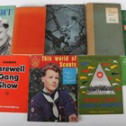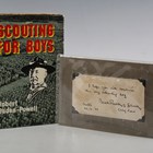 BADEN-POWELL, Robert. Scouting For Boys. London: C. Arthur Pearson Ltd., 1967. Reprint, with a loosely inserted card signed by Robert Baden-Powell, 8vo (197 x 126mm.) Numerous illustrations by the author. (Mild toning.) Original cloth, dust-jacket (lightly rubbed). Note: the card reads: ‘I hope you will continue this very important log, Baden-Powell of Gilwell, Chief Scout, Malta 22.2.33’. – And a further nine volumes related to scouting (including ‘The Gilwell Book’, 1938, 8vo, and Ralph Reader’s ‘Boy Scout’, 1938, 4to, and Hilary St. George Saunders ‘The Left Handshake’, 1949, 8vo) (10).