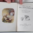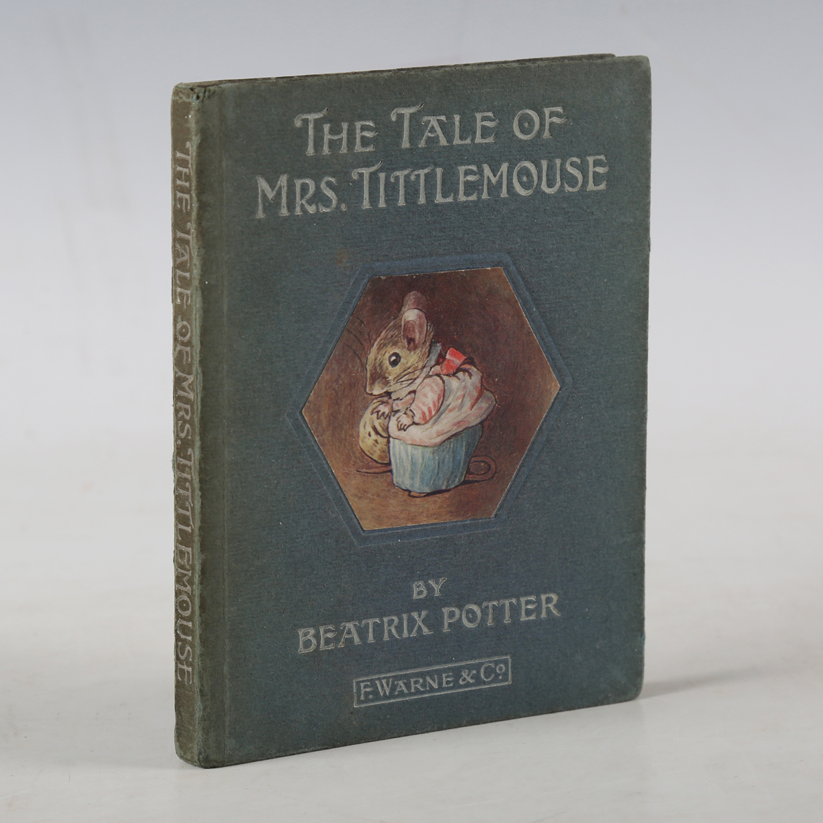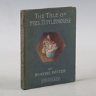 POTTER, Beatrix. The Tale of Mrs. Tittlemouse. London: Frederick Warne and Co., 1910. First edition, first or second printing, 16mo (139 x 102mm.) Colour frontispiece, title vignette and 26 colour illustrations. (Mild toning.) Original blue boards with colour illustration inset to upper cover, pictorial endpapers (toning, lightly rubbed, minor stain to lower cover). Note: dated on the title-page. Provenance: Lorna Joyce Ridgway (ink name inscribed verso front-free endpaper, dated 1910). [Linder, 429].