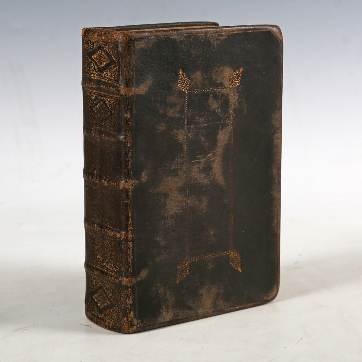 BIBLE, In English. The New Testament of our Lord and Saviour Jesus Christ, Newly Translated out of the Original Greek: and with the former Translations diligently Compared and Revised. Oxford: the University Printers, 1702. NT only. (Toning, occasional corner crease.) [Bound with:] The Whole Book of Psalms, Collected into English Metre. London: W. Richardson, 1701. (Browning and spotting to rear leaves.) [Bound with:] The Book of Common Prayer., and Administration of the Sacraments. London: Charles Bill, 1702. (Corner loss to G3 and G6, text slightly affected, marginal loss to L8, text affected, browning, corner creasing.) Contemporary black full morocco, elaborate gilt to spine (extremities rubbed, some fading to spine gilt, lacking rear endpaper).